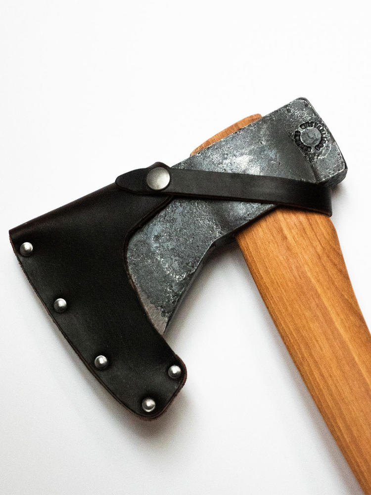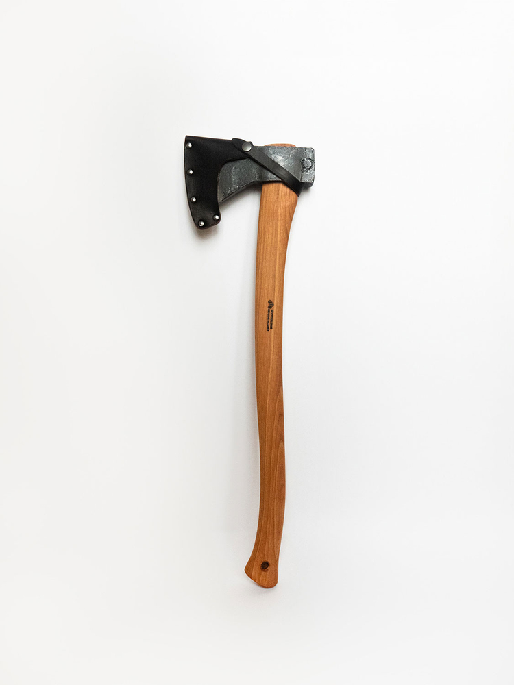 A versatile forest axe favored by outdoor enthusiasts, the Wetterlings Hudson Bay is hand-forged from Swedish carbon steel and hardened to 57 RwC at the edge. The axe features a durable hickory handle and comes with a leather sheath to protect the edge.